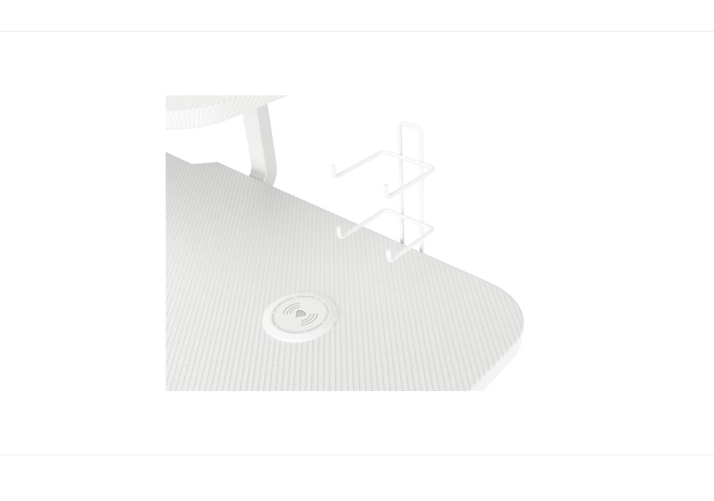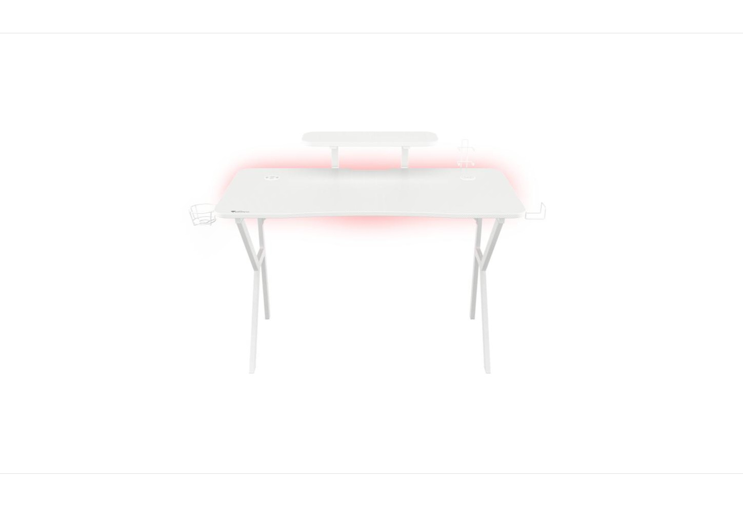 Birou gaming Genesis Holm 320 RGB, cadru din metal, MDF textura tip carbon, iluminare RGB, management cabluri, alb